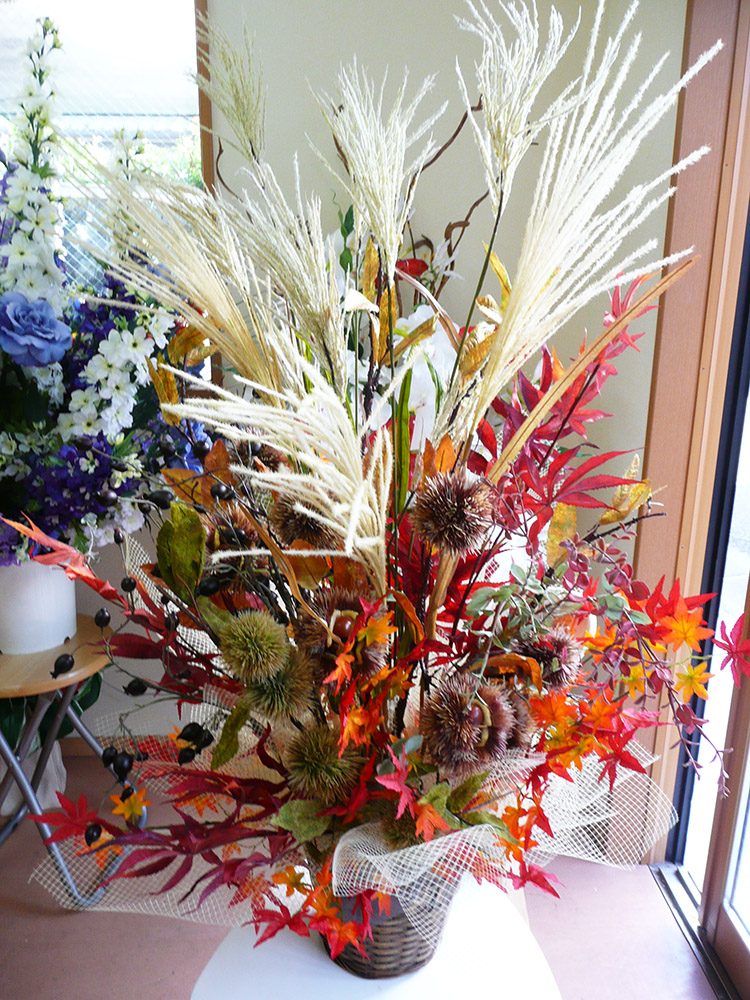 もみじ、ススキ、栗