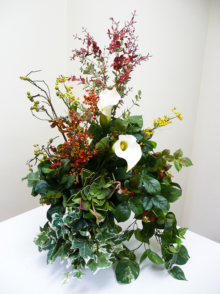 カラー、エケベリア、アイビー、ポトス、ベリー