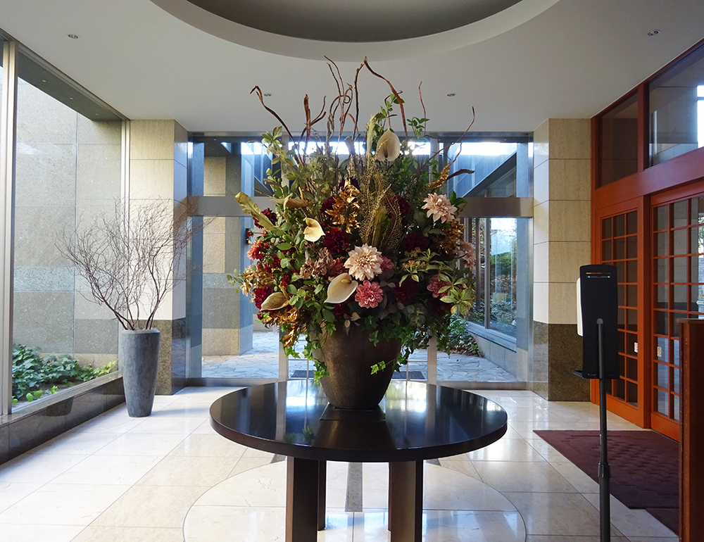 ダリア、アンスリューム、石化柳、ローズ、ベリー、ブラシノキ、グリーン各種