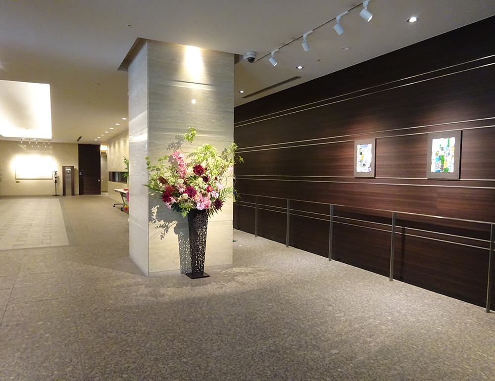 作品番号SET-120 設置場所 中央区 タワーマンション エントランス サイズ(花器含む) オブジェ・大型 高さ2m程度 主な花材 ダリア、シンビジューム、パームリーフ、グリーン各種 ※アレンジはすべてスタジオ理佳オリジナルデザインです。