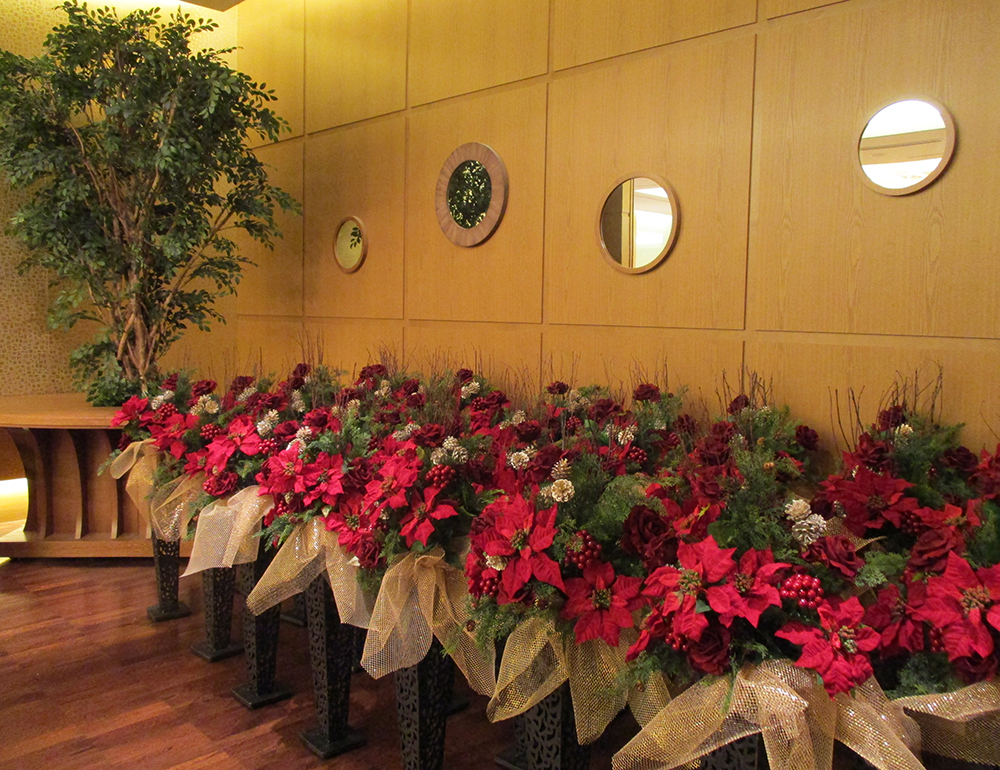 作品番号SET-142 設置場所 都内 ホテル サイズ(花器含む) LLサイズ 高さ125cm程度 主な花材 ポインセチア、松ぼっくり、グロスレッドベリー、ヒバ ※アレンジはすべてスタジオ理佳オリジナルデザインです。