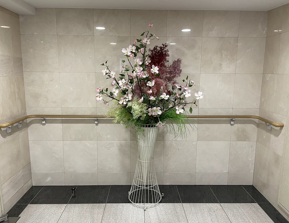 作品番号SET-143 設置場所 横浜市 マンション エントランス サイズ(花器含む) オブジェ・大型 高さ180cm程度 主な花材 ハナミズキ、スモークツリー ※アレンジはすべてスタジオ理佳オリジナルデザインです。