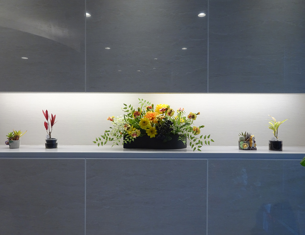 作品番号SET-149 設置場所 マンション エントランス ニッチ サイズ(花器含む) Mサイズ 主な花材 パンジー、すずらん、ガーベラ、ダリア、ブルーベリー、スマイラックス ※アレンジはすべてスタジオ理佳オリジナルデザインです。