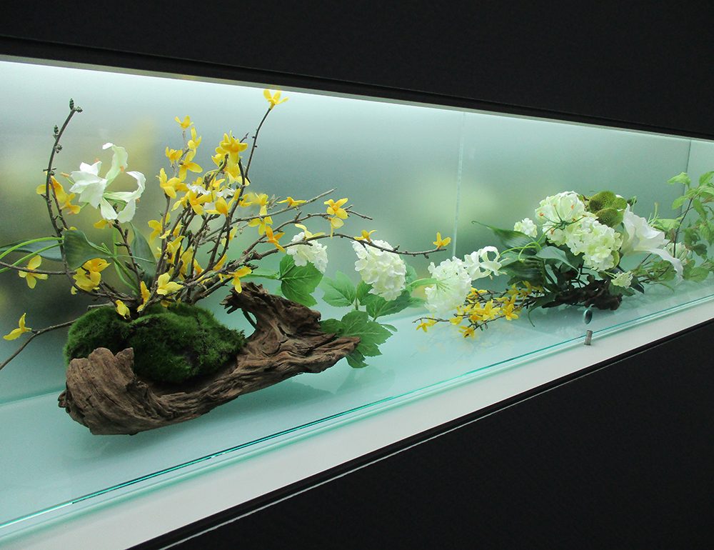 作品番号SET-223 設置場所 オフィス ウィンドウディスプレイ サイズ(花器含む) オブジェ・大型 主な花材 レンギョウ、スノーボール、グロリオサ、流木、苔 ※アレンジはすべてスタジオ理佳オリジナルデザインです。