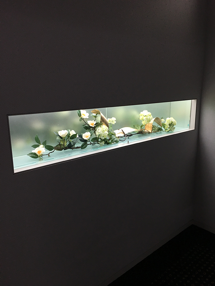 作品番号SET-227 設置場所 オフィス ウィンドウディスプレイ サイズ(花器含む) オブジェ・大型 ディスプレイ横幅180cm 主な花材 椿、ゴールドニューサイラン ※アレンジはすべてスタジオ理佳オリジナルデザインです。