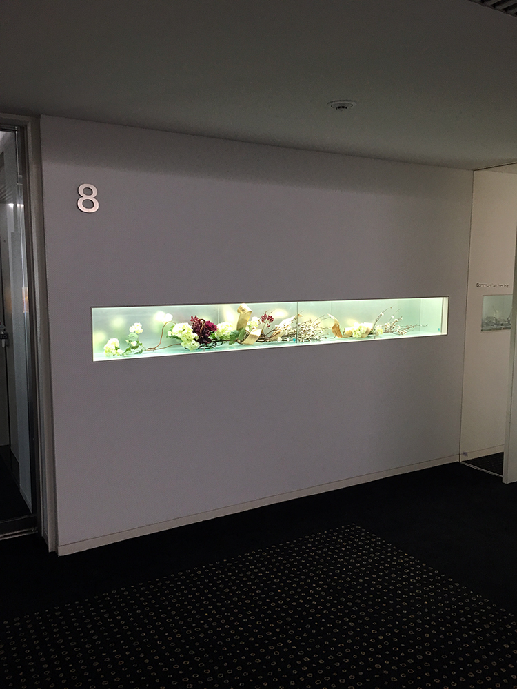 作品番号SET-228 設置場所 オフィス ウィンドウディスプレイ サイズ(花器含む) オブジェ・大型 ディスプレイ横幅280cm 主な花材 梅、枝、ゴールドニューサイラン ※アレンジはすべてスタジオ理佳オリジナルデザインです。