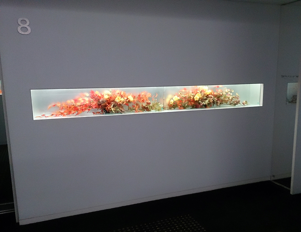 作品番号SET-232 設置場所 オフィス ウィンドウディスプレイ サイズ(花器含む) オブジェ・大型 ディスプレイ横幅280cm 主な花材 紅葉、栗、バラ、グレープリーフ ※アレンジはすべてスタジオ理佳オリジナルデザインです。