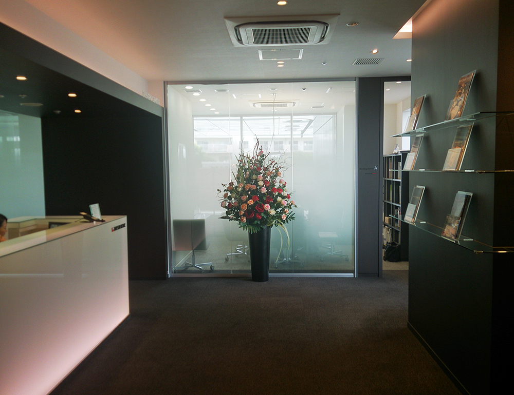 作品番号SET-237 設置場所 三井ホーム 恵比寿ショールーム サイズ(花器含む) オブジェ・大型 高さ2m程度 主な花材 バラ、シングルリーフ、枝 ※アレンジはすべてスタジオ理佳オリジナルデザインです。