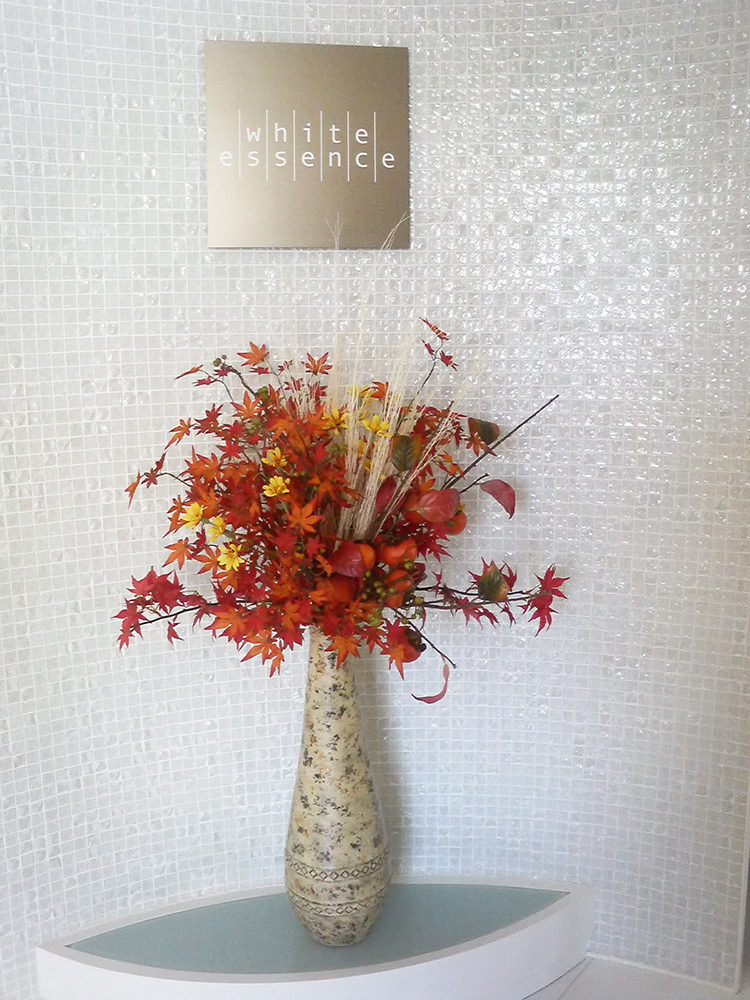 作品番号SET-277 設置場所 ホワイトエッセンスJOYデンタルクリニック サイズ(花器含む) 床置き 高さ130cm程度 主な花材 もみじ、柿、ツワブキ、ほうき草 ※アレンジはすべてスタジオ理佳オリジナルデザインです。
