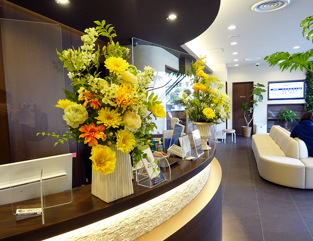 作品番号SET-286 設置場所 中央区 クリニック 受付カウンター サイズ(花器含む) Lサイズ 主な花材 ガーベラ、ポピー、ラナンキュラス、ツイーディア、エリンジウム、ベリー ※アレンジはすべてスタジオ理佳オリジナルデザインです。