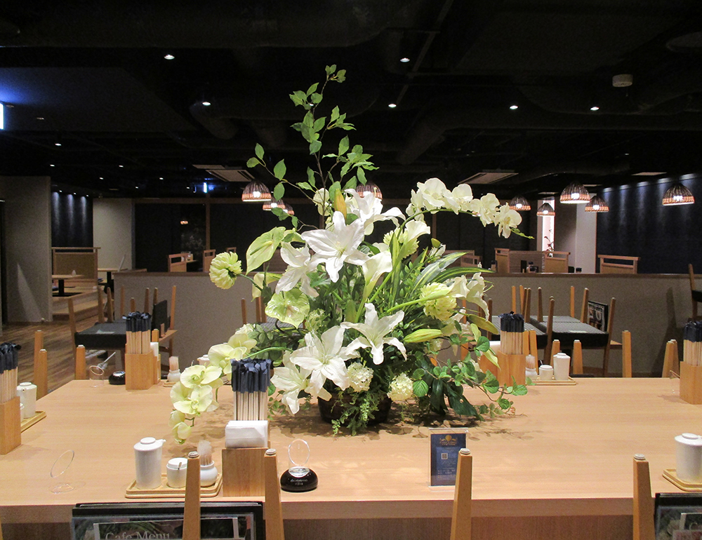 カサブランカ、コチョウラン、アンスリウム、スノーボール、ドラセナ、モンステラ
