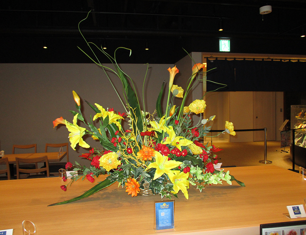 作品番号SET-351 設置場所 新宿 和食レストラン サイズ(花器含む) オブジェ・大型 高さ100cm程度 主な花材 ユリ、カラー、タニワタリ、ウィロー ※アレンジはすべてスタジオ理佳オリジナルデザインです。