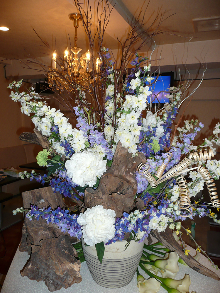 作品番号SET-391 設置場所 都内 クラブ サイズ(花器含む) オブジェ・大型 高さ120cm程度 主な花材 デルフィニウム、ピオニー、カラー、流木 ※アレンジはすべてスタジオ理佳オリジナルデザインです。