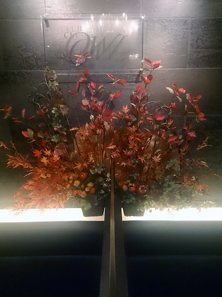 作品番号SET-416 設置場所 都内 クラブ サイズ(花器含む) オブジェ・大型 高さ100cm程度 横幅120cm程度 主な花材 紅葉、オータムバーチリーフ、ツイッグ ※アレンジはすべてスタジオ理佳オリジナルデザインです。