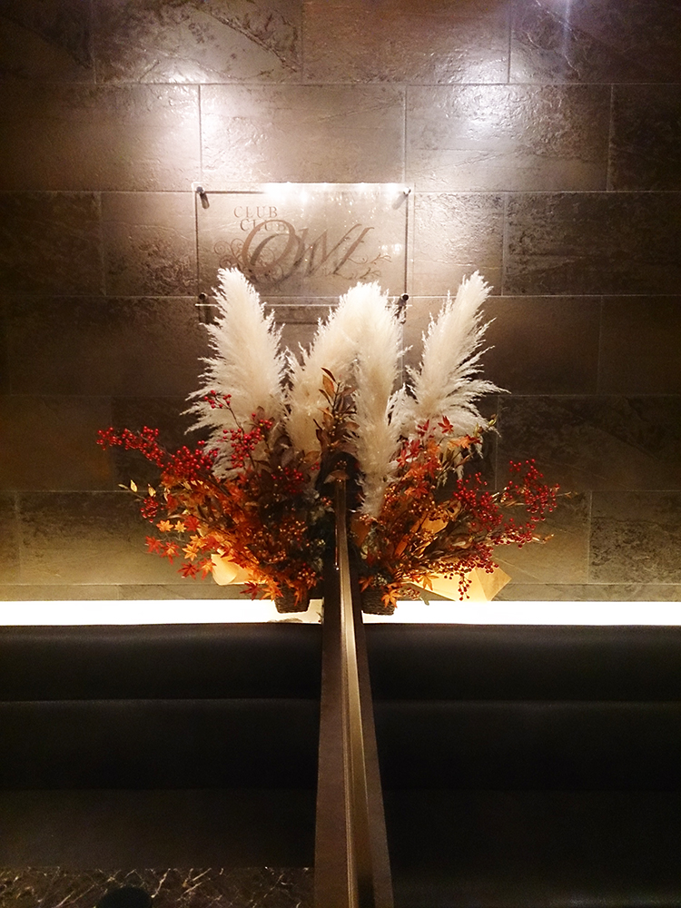 作品番号SET-417 設置場所 都内 クラブ サイズ(花器含む) オブジェ・大型 高さ100cm程度 横幅120cm程度 主な花材 紅葉、パンパスグラス ※アレンジはすべてスタジオ理佳オリジナルデザインです。