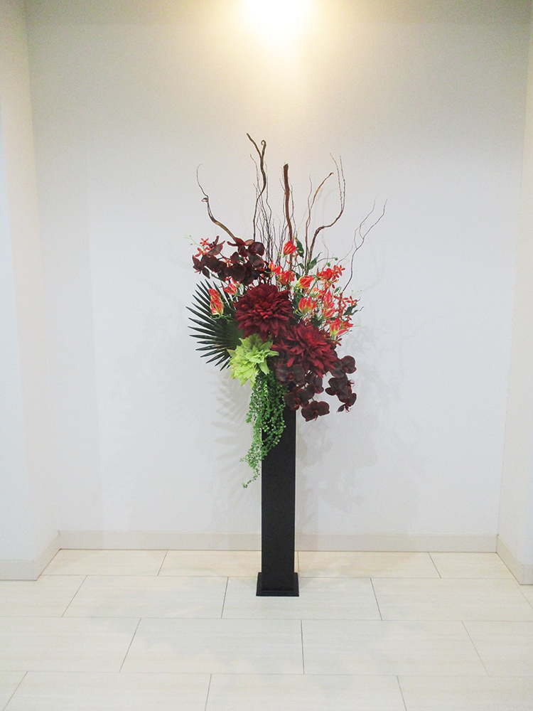 作品番号SET-445 設置場所 個人邸 エントランス サイズ(花器含む) オブジェ・大型 高さ180cm程度 主な花材 ダリア、コチョウラン、グロリオサ、石化柳、うんりゅう柳 ※アレンジはすべてスタジオ理佳オリジナルデザインです。