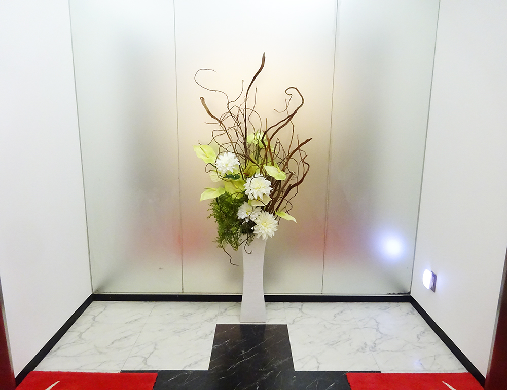 作品番号SET-466 設置場所 渋谷区 オフィス エントランス サイズ(花器含む) オブジェ・大型 高さ160cm程度 主な花材 ダリア、アンスリューム、石化柳、ウィロー、アジアンタム ※アレンジはすべてスタジオ理佳オリジナルデザインです。