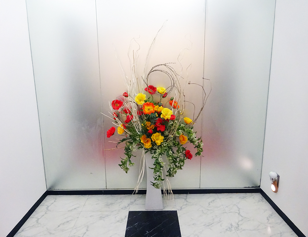 作品番号SET-492 設置場所 渋谷区 オフィス エントランス サイズ(花器含む) オブジェ・大型 高さ160cm程度 主な花材 ポピー、コデマリ、雲竜柳、柳、三又 ※アレンジはすべてスタジオ理佳オリジナルデザインです。